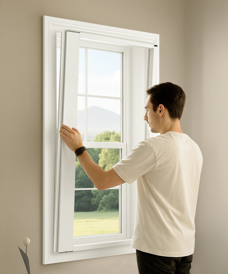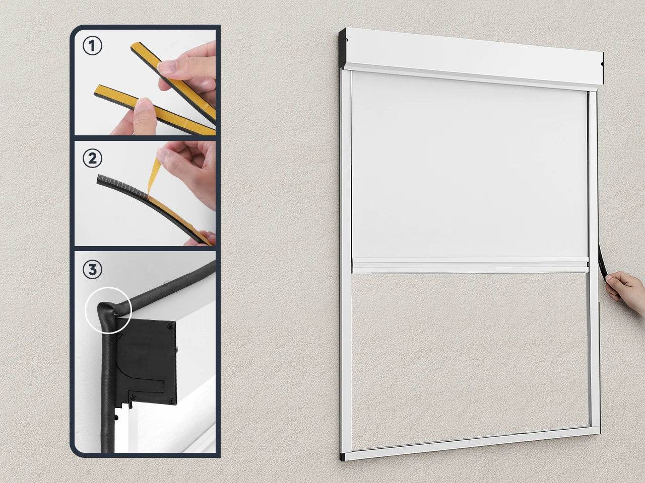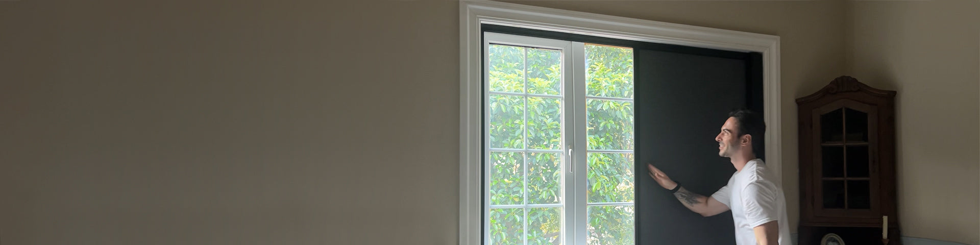 Place the blinds inside of your window recess. Test the blinds by pulling the fabric frame to the left.