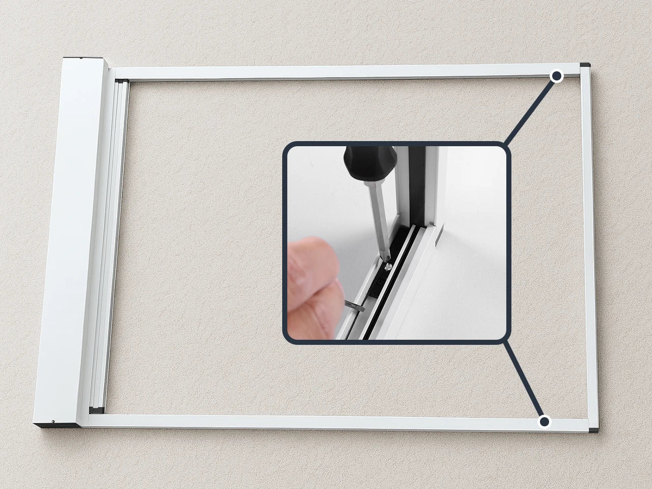 Pull one slider down inside the frame and push the other slider up to tighten the cords securely.